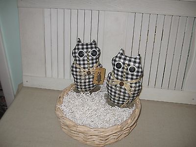 Primitive Fabric Bowl Fillers Black & White Checkered Owls Set 2