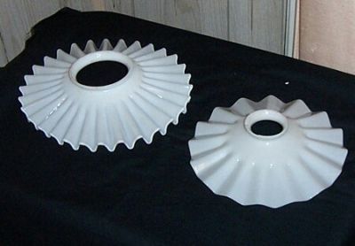 2-ANTIQUE FLUTED MILK GLASS LIGHT SHADES INDUSTRIAL