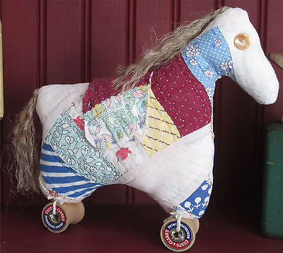 Title (ebay affiliate link): Folk Art HORSE on Wooden Spools made from VINTAGE QUILT ~ Primitive Home Decor ~