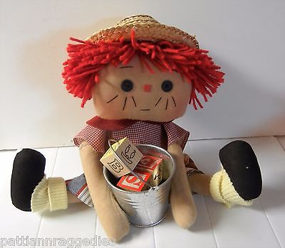 Primitive Raggedy Ann Doll "LEWIS "BUTTON EYE BOY DOLL 13 INCH BUCKET BLOCKS