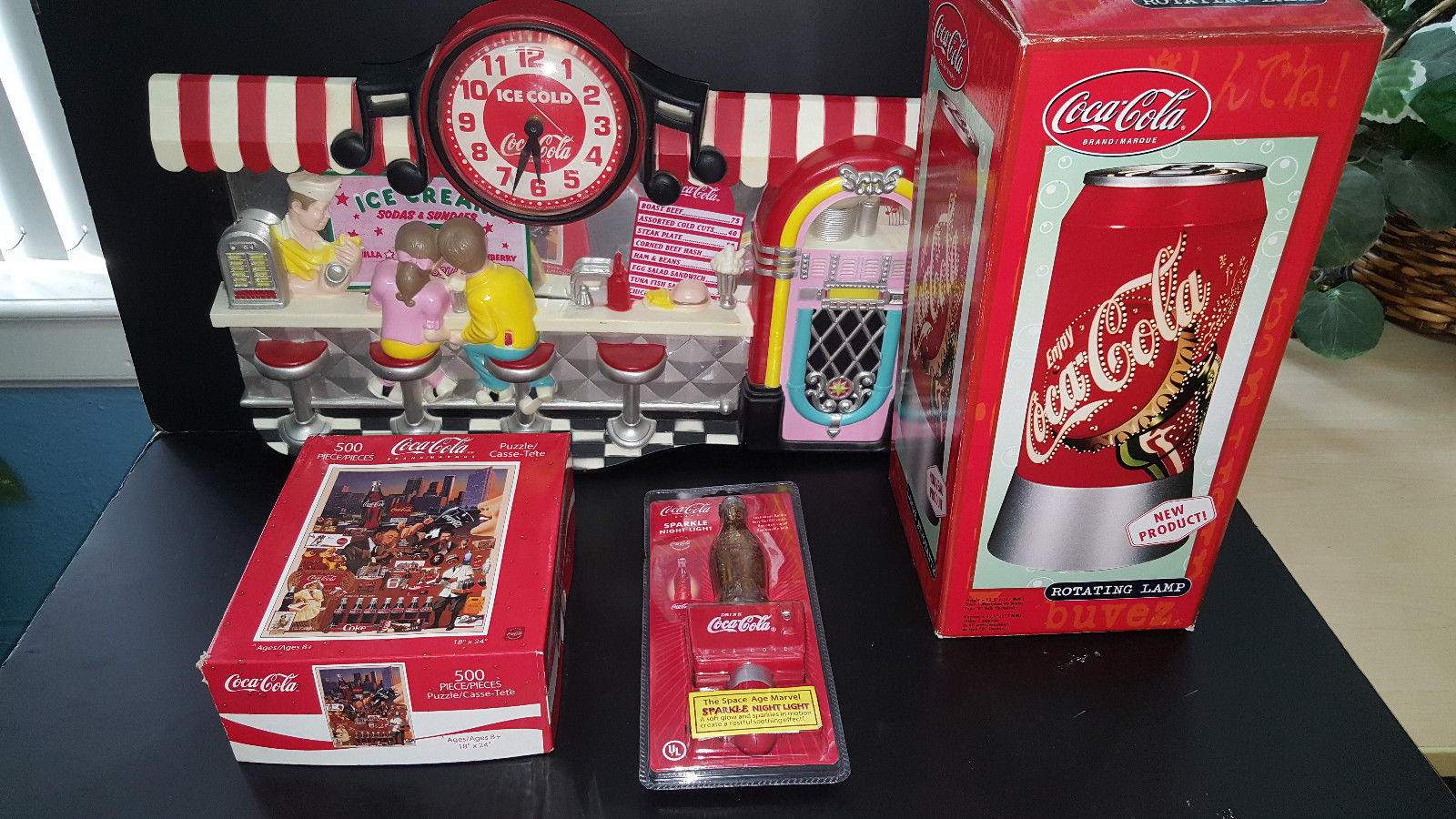 Title (ebay affiliate link): Lot of Coca Cola Memorabilia Rotating Lamp Clock Night Light and Puzzle