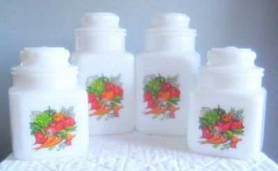 4 Vintage Milk Glass Kitchen Jars Containers Canisters