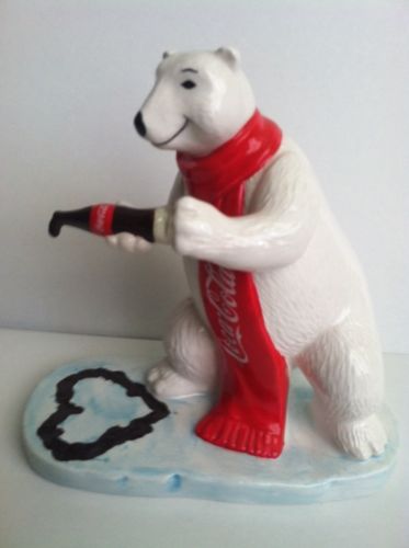 Title (ebay affiliate link): 1997 Coca-Cola Polar Bear Figurine Bear with Coke Bottle pouring a heart