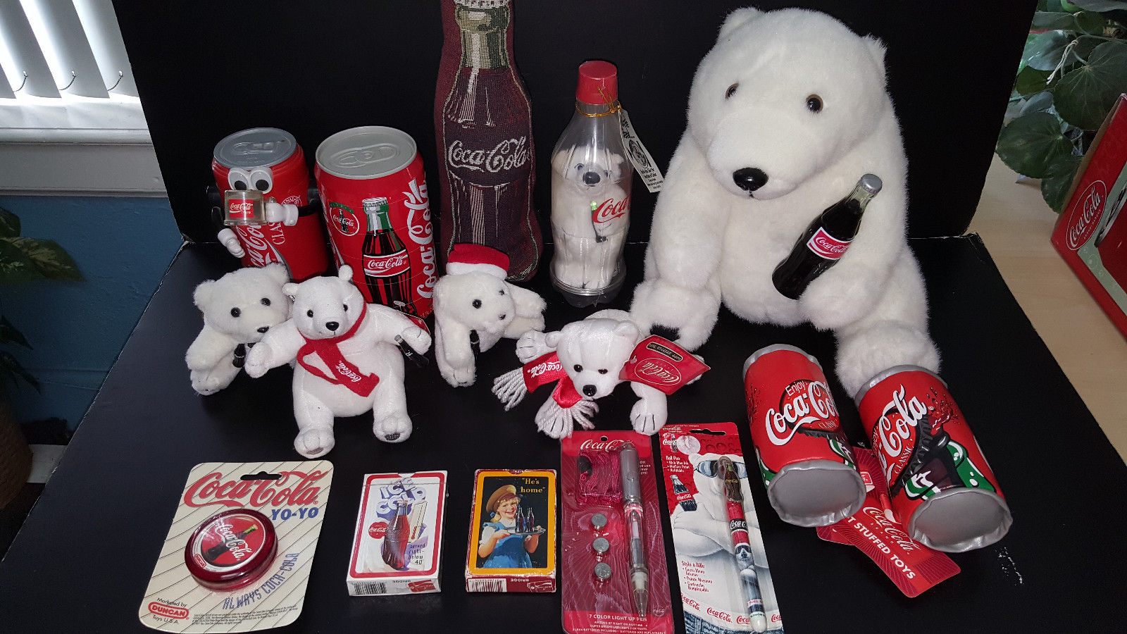 Title (ebay affiliate link): Lot of Coca Cola Memorabilia Stuffed Bears Toys Playing Cards Yo Yo