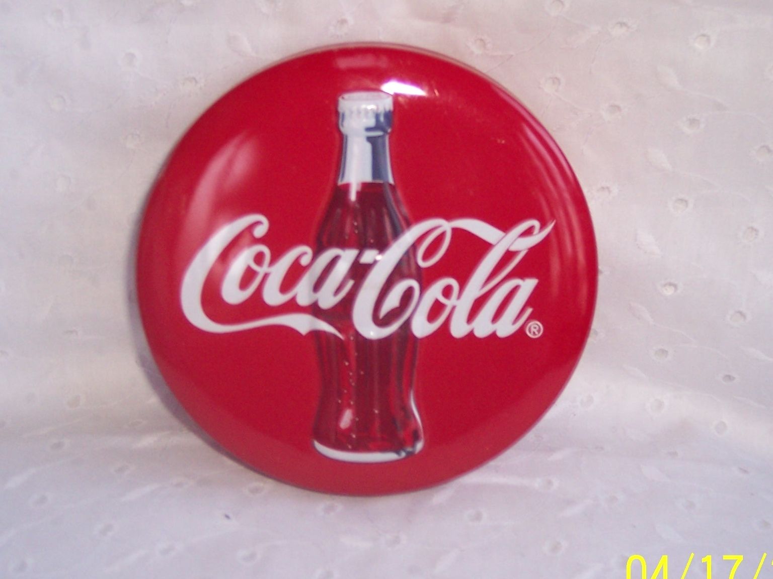 Title (ebay affiliate link): COCA COLA RED ROUND EMBOSSED TIN BOX CONTAINER COLLECTIBLE - VINTAGE