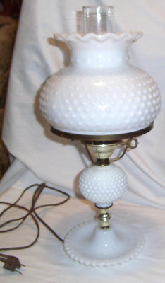 VINTAGE MILK GLASS HOBNAIL SHADE FENTON TABLE LAMP