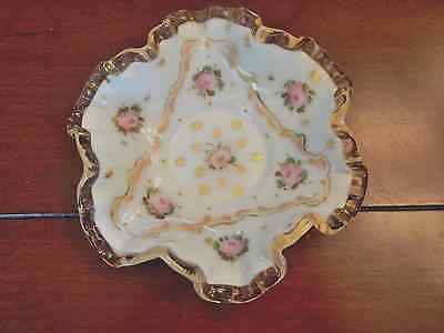 Vintage Fenton Milk Glass Ruffle Candy Dish charleston hand painted roses