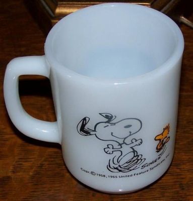 VINTAGE SNOOPY & WOODSTOCK FIRE KING MILKGLASS MUG VTG
