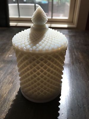 Title (ebay affiliate link): Estate Sale: Milk Glass Covered Boudoir or Vanity Makeup Jar