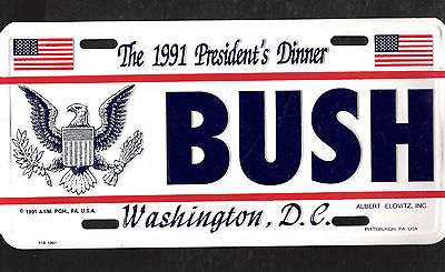 GEORGE HW BUSH heavy metal 6 x 12 inch license plate + dated invitation