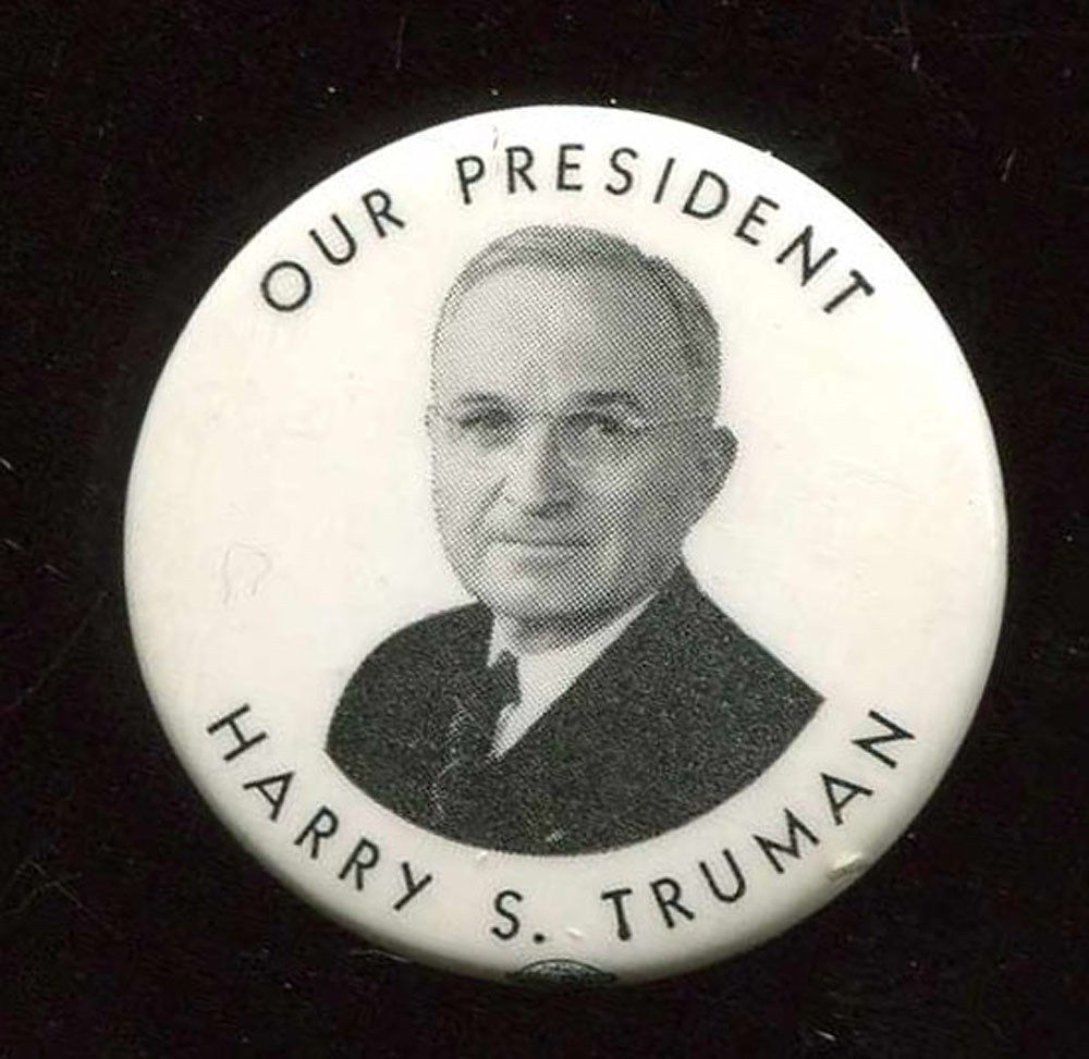 HARRY S. TRUMAN OUR PRESIDENT Vintage Pinback Button Pin