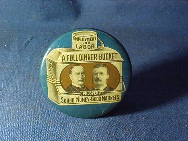 1900 McKINLEY + ROOSEVELT US PRESIDENT Campaign PINBACK A Full DINNER BUCKET