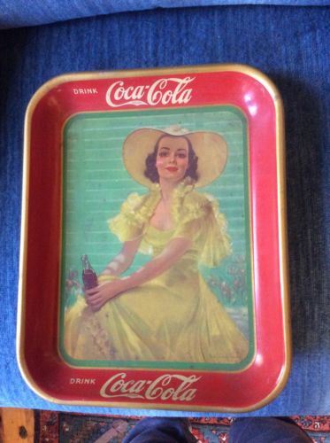 Title (ebay affiliate link): Vintage Coca Cola Serving Tray Lady In Yellow Hat