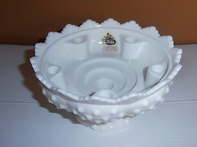 Fenton White Milk Glass Hobnail Taper Candle Holder Footed Bowl Vase