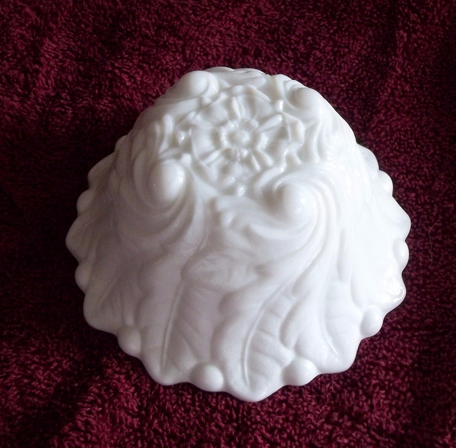 Title (ebay affiliate link): 2 Vintage White Milk Glass Flower & Leaf Daisy Small Dishes Bowls RARE HTF