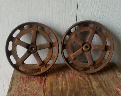 Antique VTG PAIR OF GEARS / Wheels Garden Art Steampunk Rustic Decor lamp Base