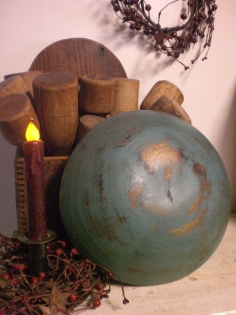 Antique Blue Wooden Dough Bowl ~ Wood Bowl