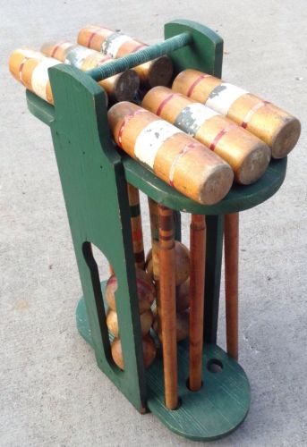 Title (ebay affiliate link): Antique Vtg Solid Wood Shabby Chic Croquet Set & Stand Yard Game Complete