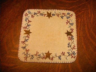Primitive 8" Hand Stitched Americana Candle Mat~Red White Blue~Rusty Tin