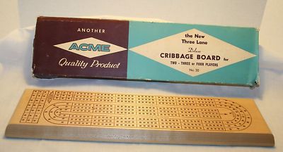 ACME deluxe Cribbage Board three lane #30 in box USED?