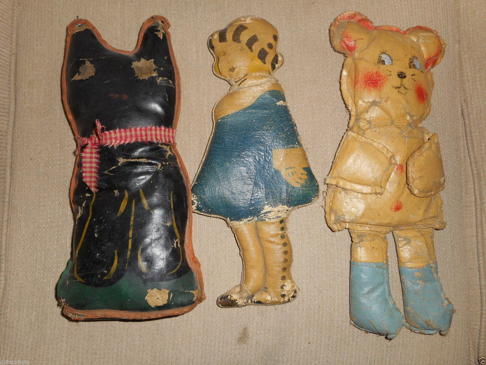AAFA 3 ANTIQUE OIL CLOTH CHARACTER DOLLS