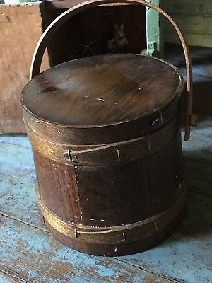 Title (ebay affiliate link): PRIMITIVE Top of stack Antique FIRKIN Sugar Bucket PANTRY BOX- MUST SEE