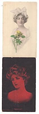 Lot of 2 Vinatge Postcards-Portraits Beautiful Victorian Women in 1910 & 1914-VF