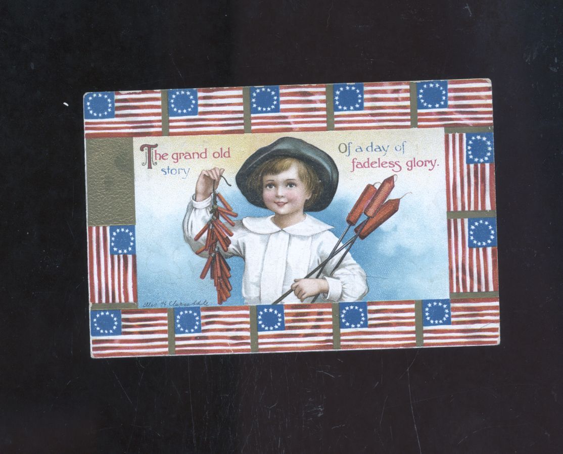 old signed Clapsaddle patriotic July 4th Independence Day postcard,fireworks