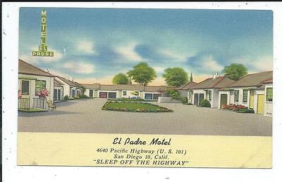 Linen Postcard Roadside El Padre Motel Hwy 101 San Diego CA California