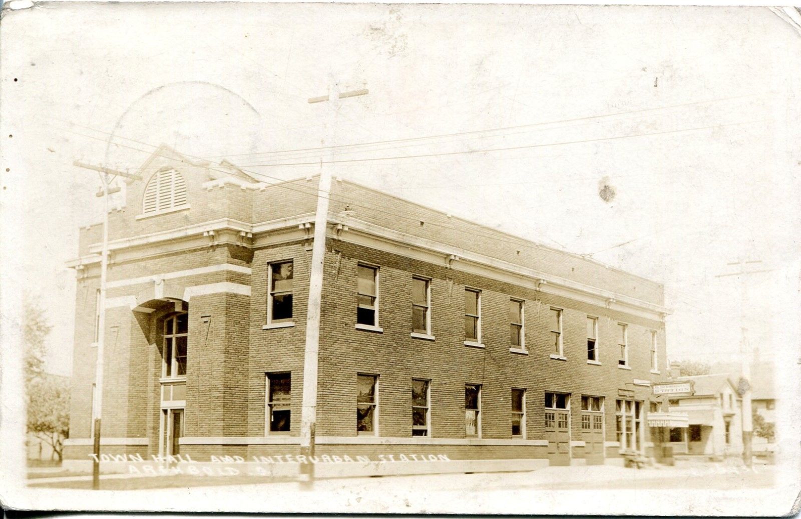 1910 Town Hall and Interurban Station Archbold Ohio Real Photo Postcard