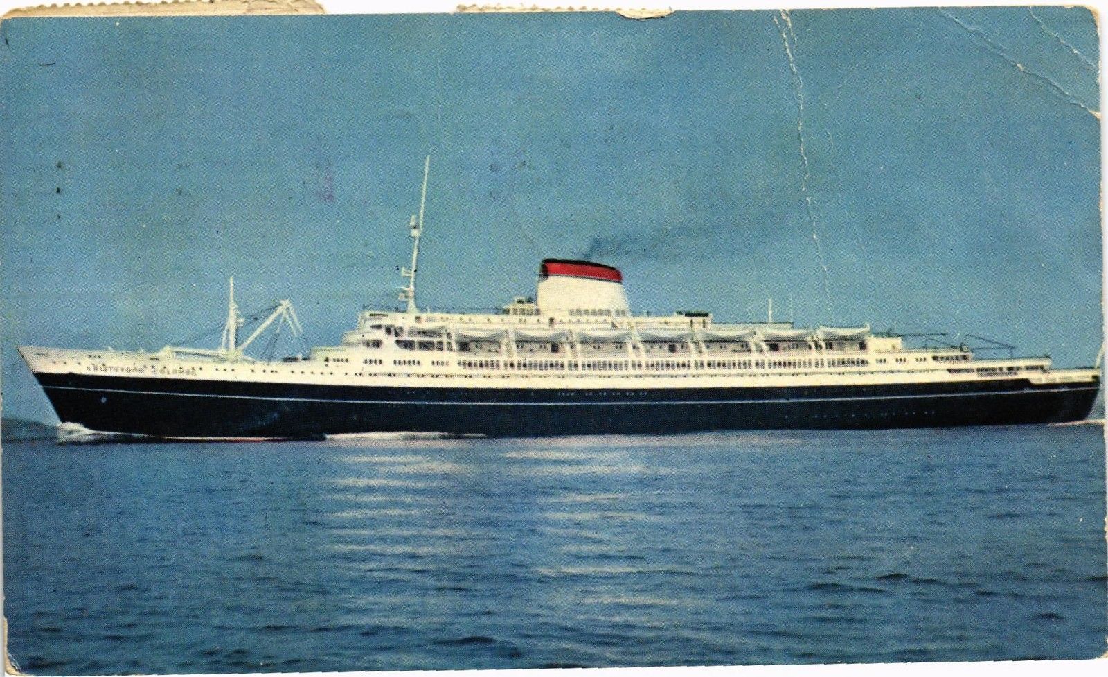DR JIM STAMPS CRUISE SHIP THE CRISTOFORO COLOMBO GIBRALTAR POSTCARD 1958