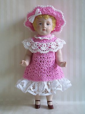 Title (ebay affiliate link): Hand Crocheted Dress Set for 7 "- 8" Antique German French All Bisque Doll Pink
