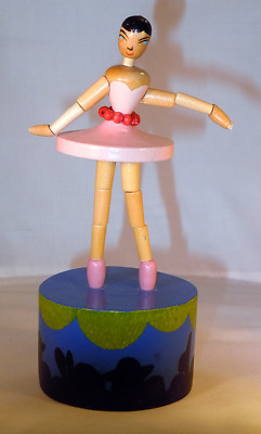 Vintage old Ballerina wooden push puppet toy