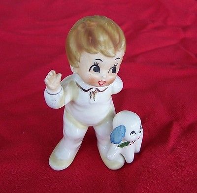 Title (ebay affiliate link): Vtg Josef Originals Porcelain Baby Boy Figurine in PJ's with White Dog
