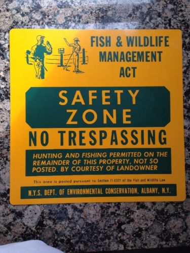 Title (ebay affiliate link): Vintage 1960s Fish Wildlife Fishing Hunting Safety Zone New York Metal Sign~Nice