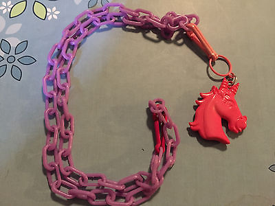 Vintage 80's Plastic Bell Charm Retro clip on Purple chain with pink Unicorn