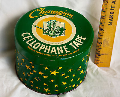 VINTAGE CHAMPION CELLOPHANE TAPE TIN NICE!!