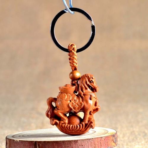 Title (ebay affiliate link): Wood Carving Chinese Feng Shui Geomancy Horse Gold Statue Key Chain Ring