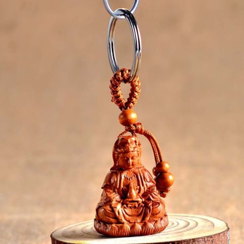 Title (ebay affiliate link): Wood Carving Chinese Feng Shui Geomancy Kwan Guan Yin Statue Key Chain Ring