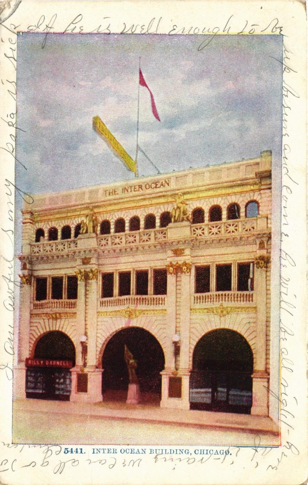 Title (ebay affiliate link): DR JIM STAMPS US INTER OCEAN BUILDING CHICAGO POSTCARD 1908