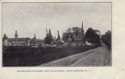 Title (ebay affiliate link): West Copake NY Columbia County Road Church Building Cemetery Scene Postcard N Y