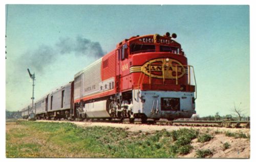 Title (ebay affiliate link): Santa Fe Railroad GE U30CG Diesel The Tulsan Train at Iola Kansas 1960s Postcard