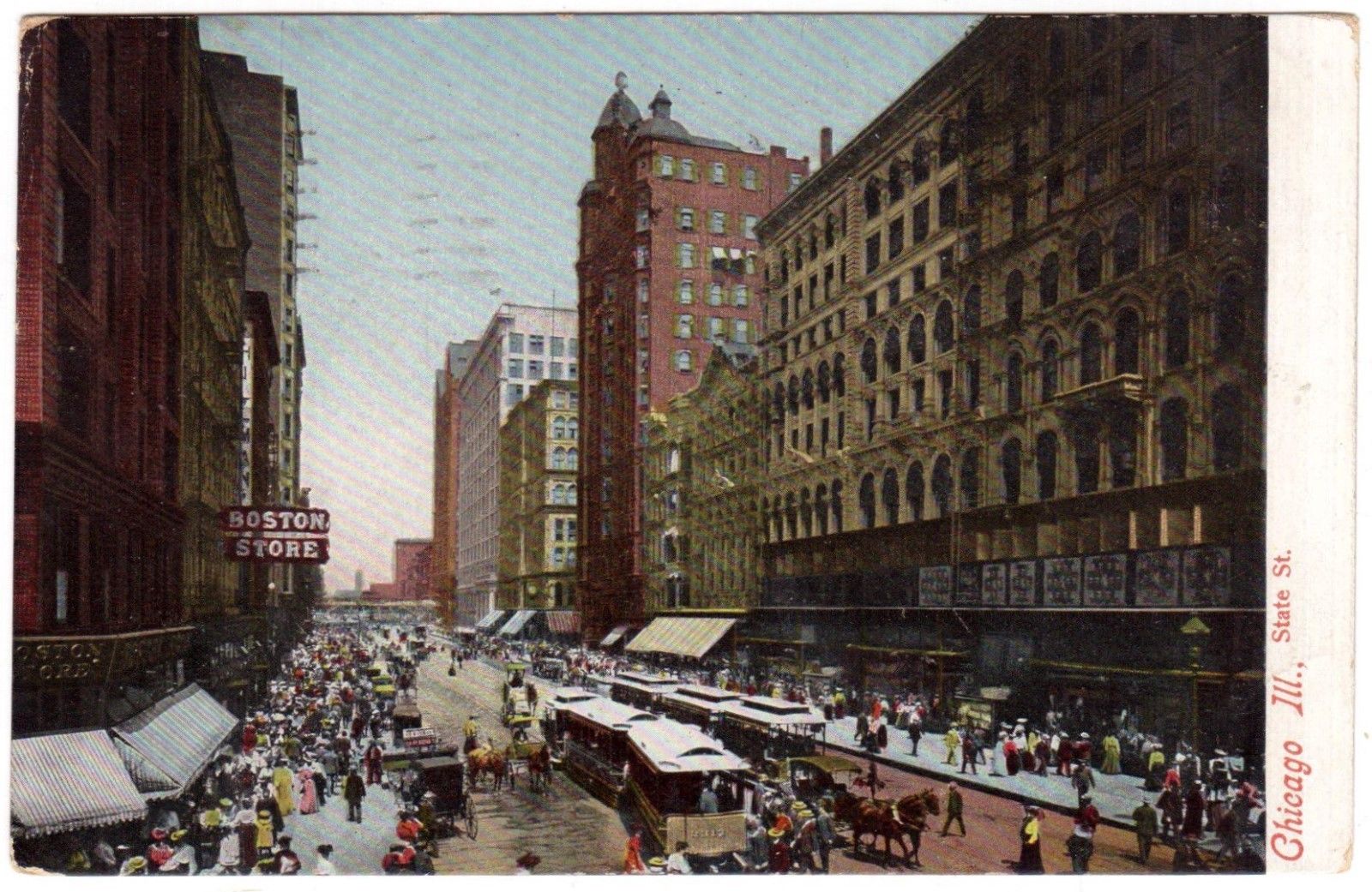 Title (ebay affiliate link): ANTIQUE 1908 BUSY STATE STREET CHICAGO ILLINOIS POSTCARD