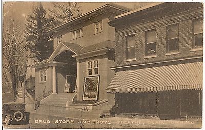 Drug Store and Roys Theatre in Blairstown NJ Postcard