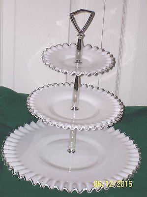 FENTON MILK GLASS CRESCENT EDGE 3-TIER PEDESTAL RELISH/DESSERT STAND