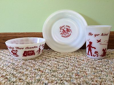 Vintage Hazel Atlas Milk Glass Child's Dish Set with Verse