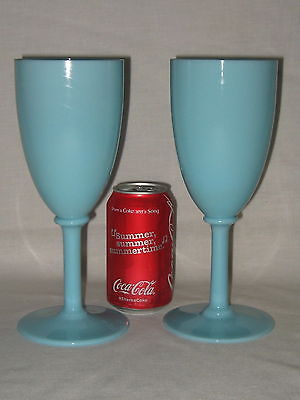 (2) VINTAGE PORTIEUX VALLERYSTHAL BLUE OPALINE MILK GLASS GOBLET 9 3/4"