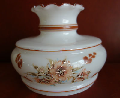 Vintage 7" Fitter White Milk Glass Shade Painted Brown Flowers Hurricane Lamp