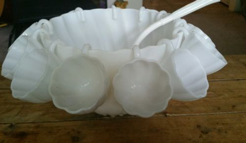 Title (ebay affiliate link): VINTAGE NEWLAND SCHNEELOCH & PIEK MILK GLASS PUNCH BOWL SET 14 PIECE