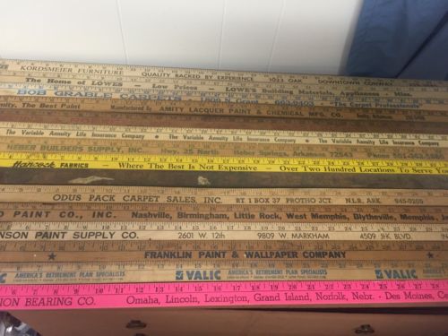 15 Vintage Wooden Advertising Yardsticks ARROW AR, TN, NE, IA,TX, MS,